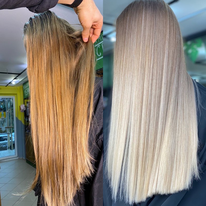 Хожу к мастеру Марату уже давно — он единственный, кто смог идеально подобрать мне холодный цвет на длинные волосы! Каждый раз остаюсь в восторге от результата. После окрашивания мы делали разные экспресс-уходы, а для домашнего ухода я купила рекомендованные шампунь и бальзам.